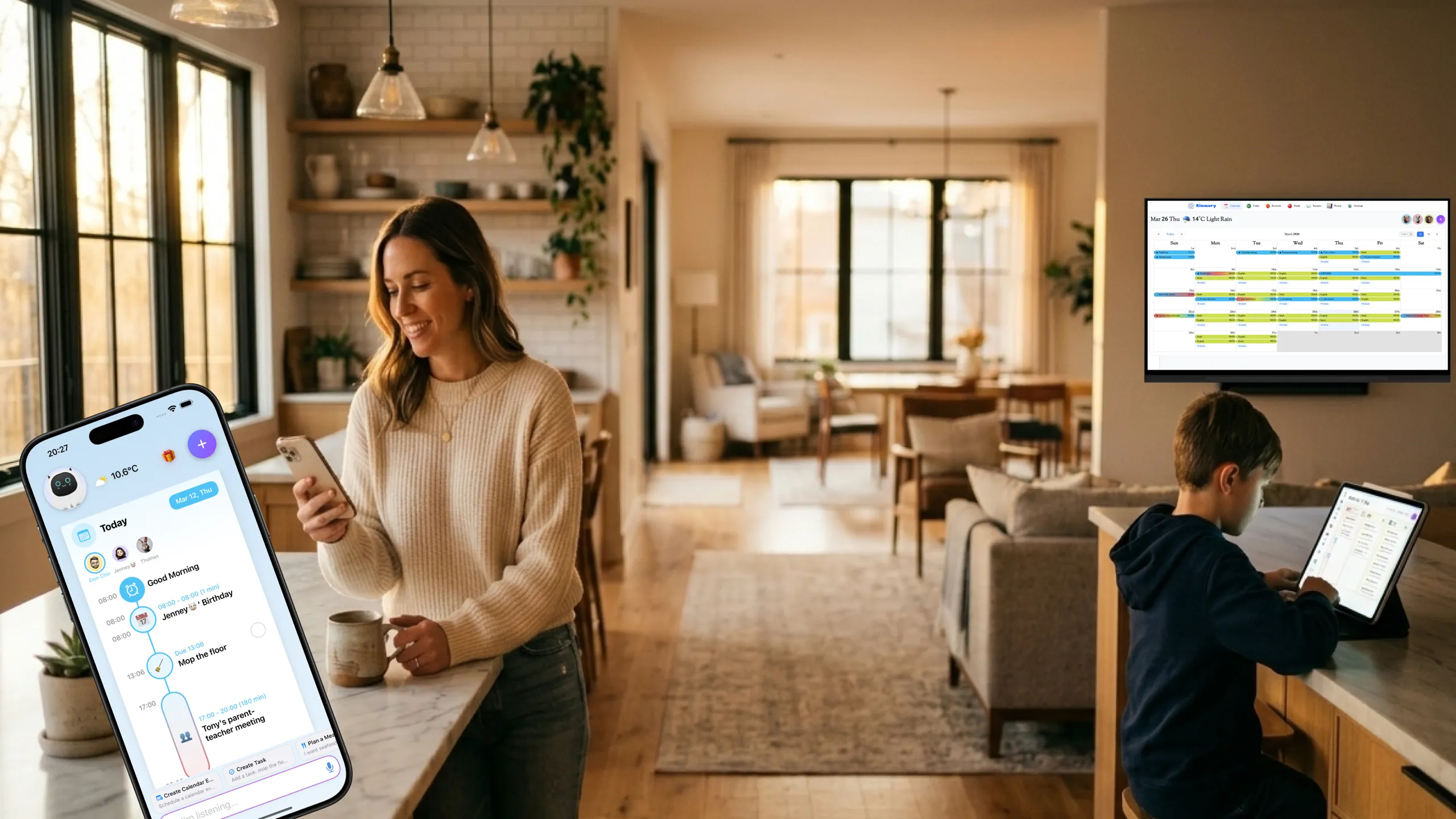 “The smart calendar on our living room wall lets everyone see today's schedule. A million times better than sticky notes on the fridge!”